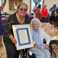 Beverly Nissel presents Evelyn Shewell her proclamation.